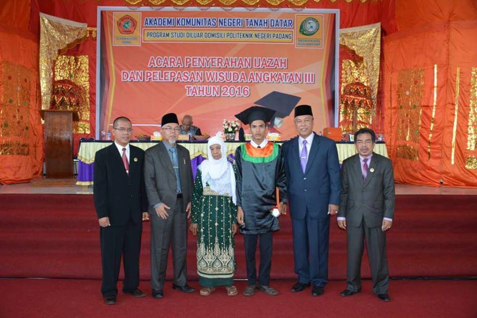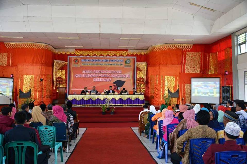 Rabu, 2 November 2016, bertempat di Aula SMKN 1 Tanah Datar dilaksanakan kegiatan penyerahan Ijazah sekaligus pelepasan Alumni Akademi Komunitas Negeri Tanah Datar (AKN TD) angkatan ke 3. Hingga saat ini, AKN TD telahmelulus sebanyak 103 alumni dan sekarang sudah bekerja pada berbagai bidang.