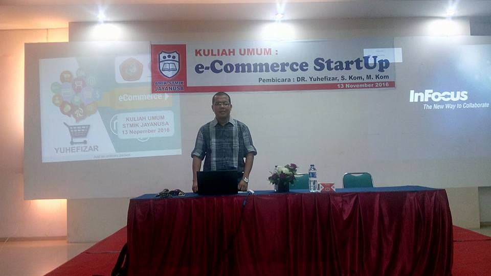 Minggu, 13 Nopember 2016 merupakan salah satu hari yang penuh aktifitas dan menyenangkan, karena pada hari itu, saya berangkat dari Bukittinggi sehabis Subuh menuju STMIK Jayanusa guna memberikan kuliah umum dengan tema e-Commerce dan Startup yang diikuti oleh sekitar 120 org mahasiswa. Perjalalan yang ditempuh selama 2 jam tersebut berjalan lancar dan aman, padahal pertemuan malam sebelumnya dengan rekan Civitas Akademika Jurusan Teknologi PNP di Hotel Campago Bukittinggi berakhir jam 24.00 WIB. Kuliah umum yang dilaksanakan mulai jam 09:00 WIB berakhir pada jam 15:00 WIB, dengan 100 slide. Terlihat selama kuliah umum mahasiswa antusias dan tidak banyak yang beranjak dari tempat duduk karena diselingi dengan video-video motivasi yang menggugah, terutama yang ada kaitannya dengan entrepreneur.