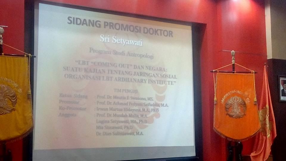 Sidang promosi yang dimulai jam 13:30 itu berlangsung sekitar 2 jam, dan akhirnya Uni Sri berhasil mempertahankan Disertasinya serta berhak atas gelar Doktor (Dr).