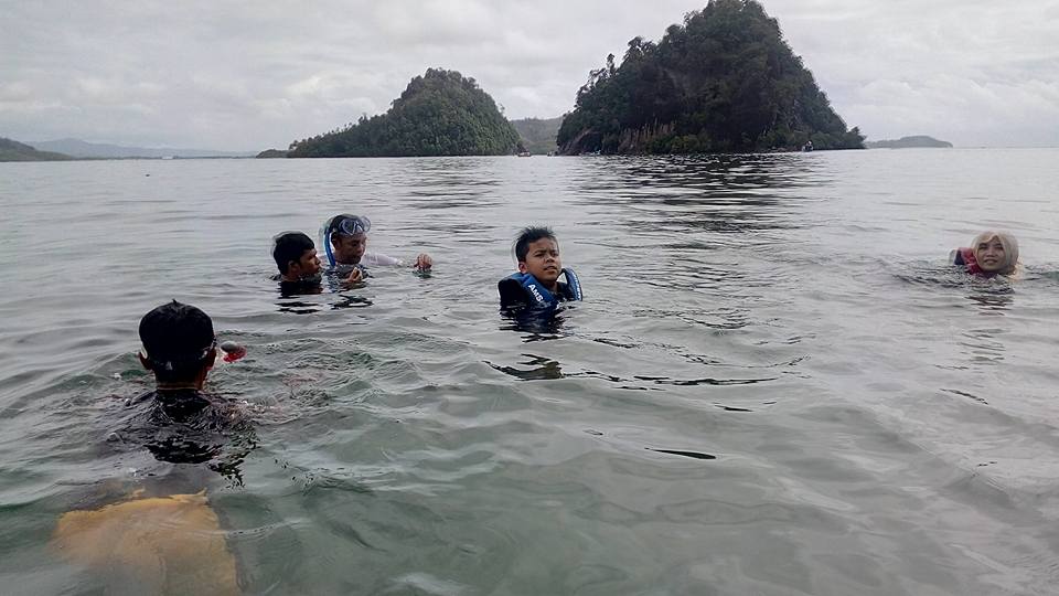 Setelah puas menikmati indahnya karunia ilahi dari puncak mandeh, kami menuju ke TPI Tarusan, namun dalam perjalanan cuaca tidak bersahabat, hujan lebat mengguyur kawasan TPI. Dalam suasana tersebut kami gunakan untuk makan siang dan setelah makan siang cuaca sudah mulai memperlihatkan suasana bersahabat dan akhirnya kamipun bisa berangkat dengan tujuan pertama ke pulau setan dan terus ke pulau sironjong kecil untuk mandi dan snorkling, lalu ke pulau sironjong besar untuk cliff jumping, ketua Heri serta Hendri sangat bersemangat mencoba cliff jumping ini.