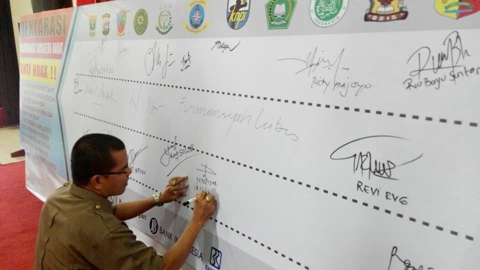 Kegiatan pencanangan anti hoax ini dihadiri oleh berbagai unsur pemerintah, Dinas Kominfo se Sumatera Barat, pelajar, UKM dan masyarakat umum turut juga menandatangani sebagai bentuk komitmen anti hoax.