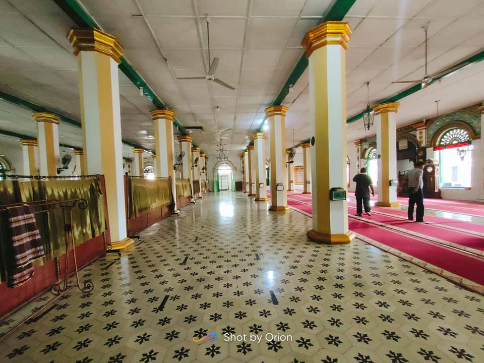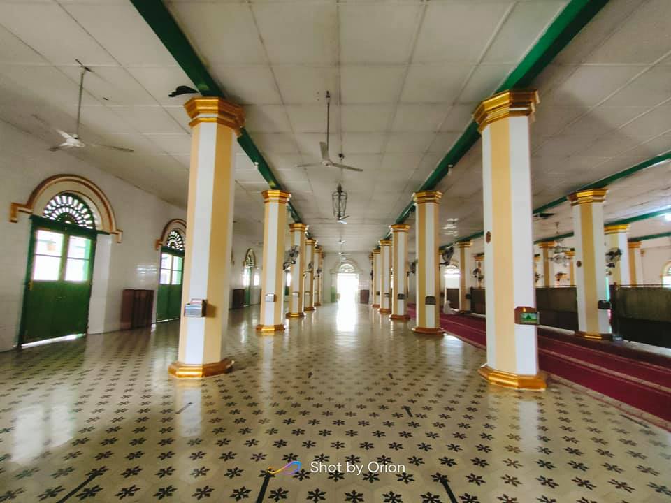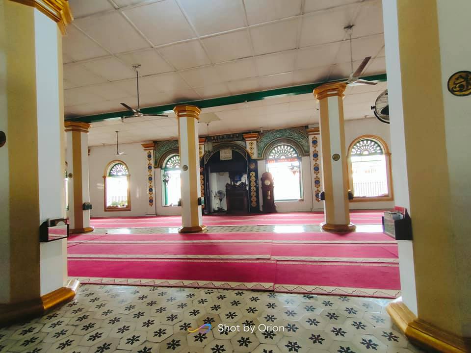 Lantai serambi depan berkeramik kuning dengan ukuran 20 x 20 cm. Lantai ruang utama terbuat dari keramik berukuran 30 x 30 cm. Sedangka serambi samping kiri dan kanan berlantaikan keramik atau tegel berwarna hijau berukuran 20 x 20 cm.